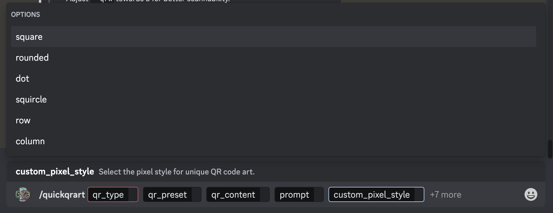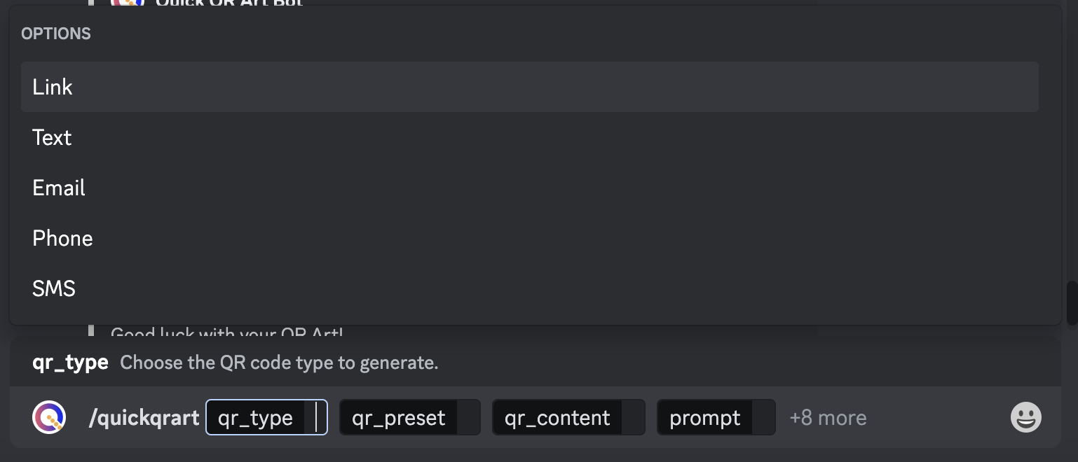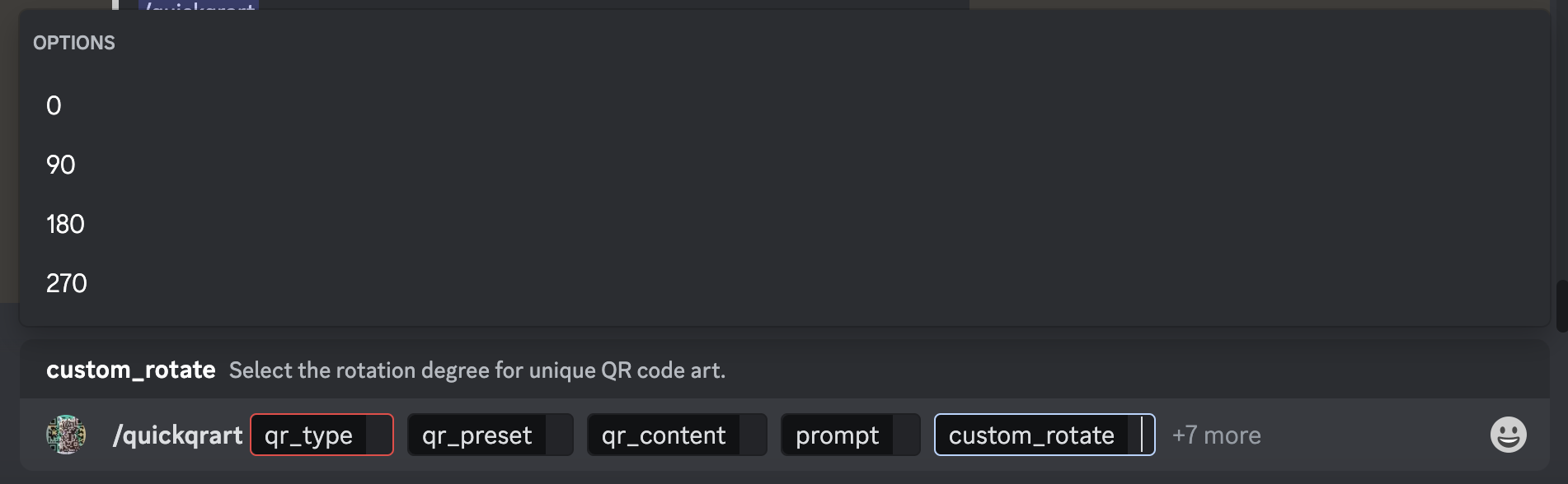 1. Type \`/quickqrart\` and select the suggested command from the list.