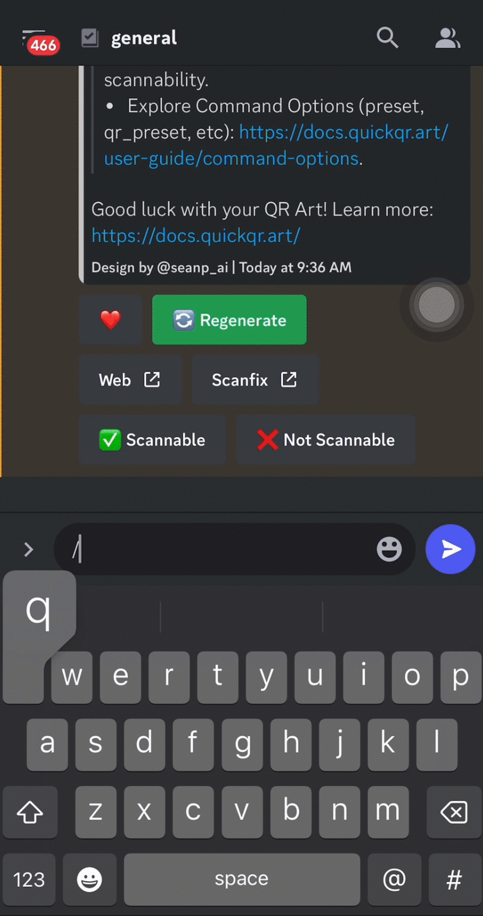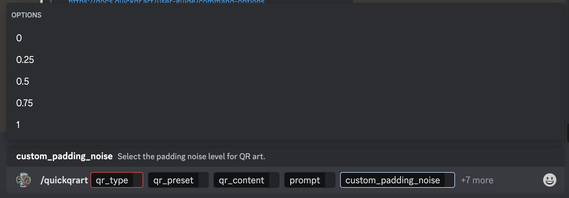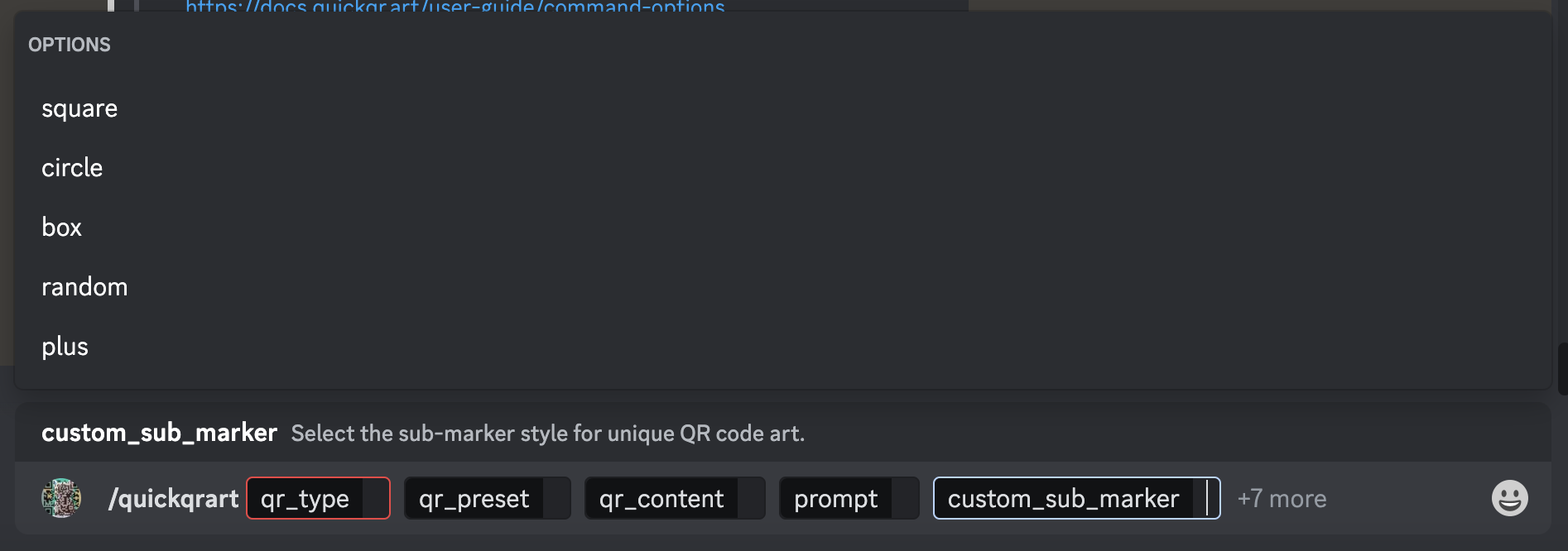1. Type \`/quickqrart\` and select the suggested command from the list.