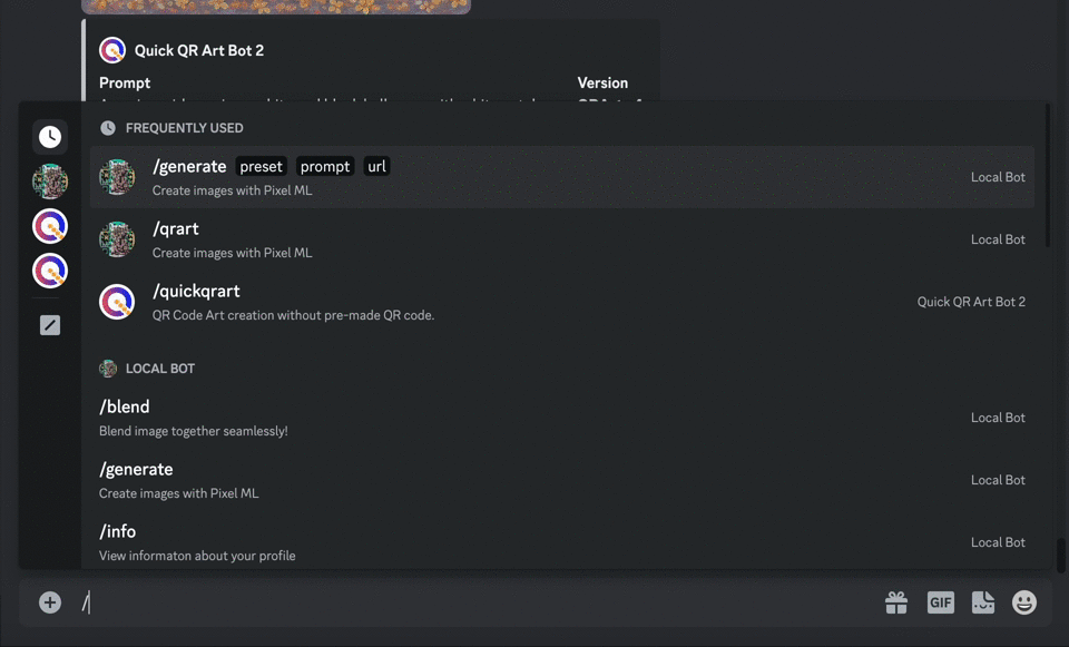 Using the `--enhance` parameter in the `/quickqrart` command: